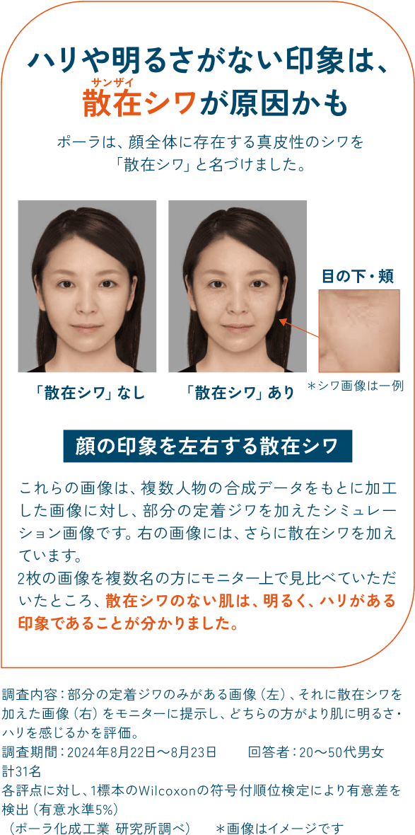真皮性のシワのなかで、部分にあるものを「定着ジワ」、